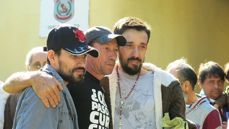 Imagen: Mariano Castro abraza a sus dos hijos este martes, Adalberto y Néstor (Articulación Curuguaty).
