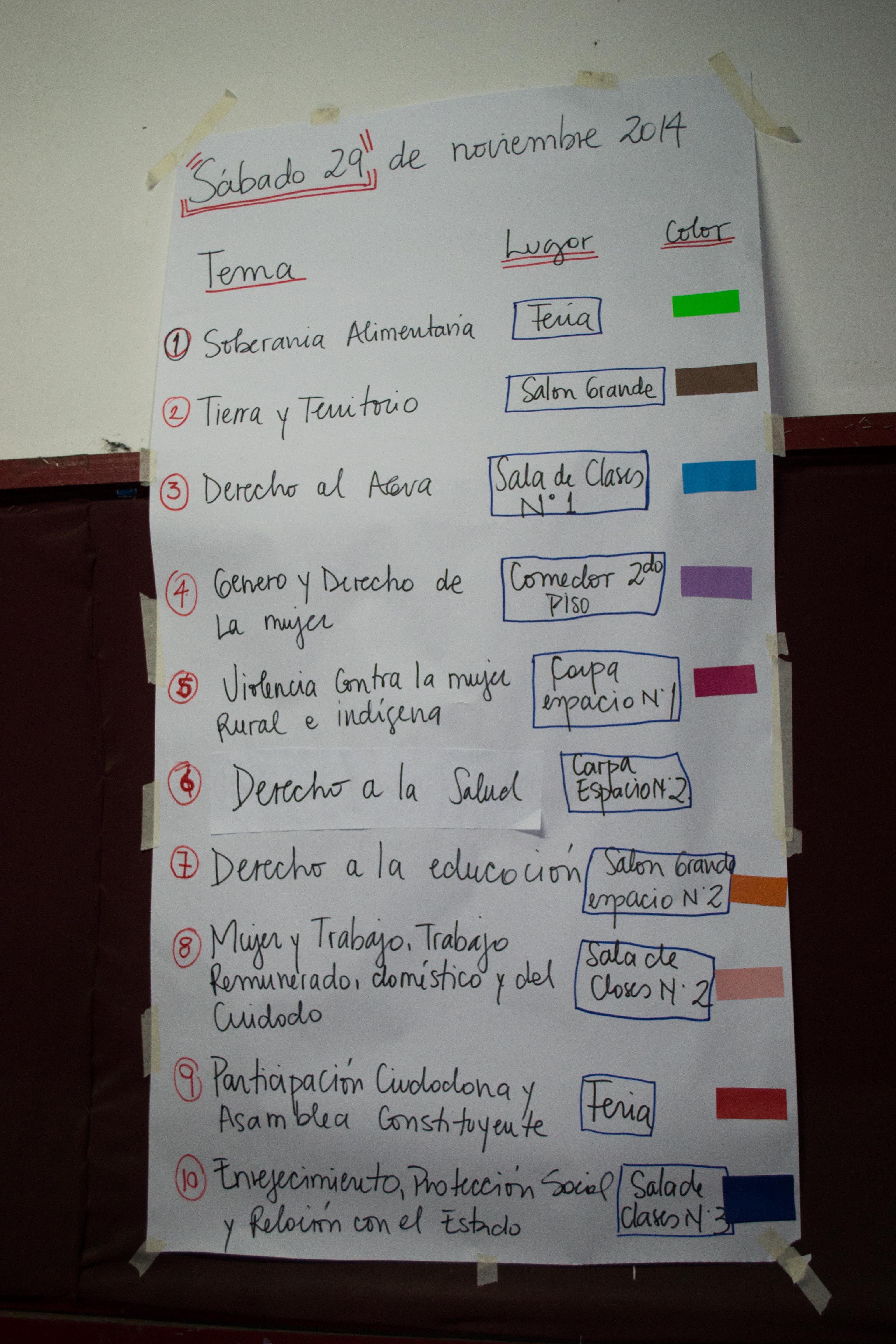 El segundo congreso de ANAMURI (Asociación Nacional de Mujeres Rurales e Indigenas) tuvo lugar en el barrio de San Miguel en el Liceo Luis Galecio en Santiago de Chile durante los días 28, 29 y 30 Noviembre 2014. El jueves de 27, todo se preparaba para recibir más de 500 participantes desde diferentes organizaciones y regiones en Chile y America del Sur. Compartimos aquí algunos de esos momentos registrados por nuestra compañera Carin Emenius, desde su llegada a Chile hasta instantes antes de iniciarse el Congreso.