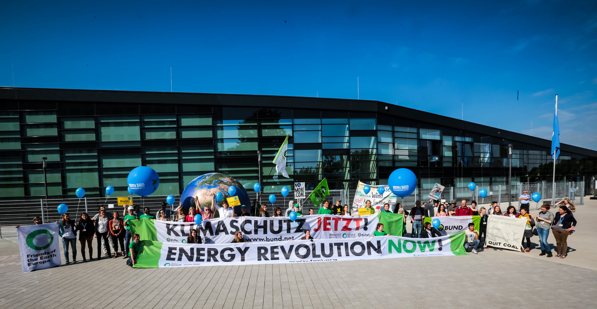 El pasado 11 de junio, a pocas horas del final de una nueva ronda de negociaciones de Naciones Unidas sobre Cambio Climático, en Bonn, Alemania, decenas de activistas de diversos grupos de Amigos de la Tierra se manifestaron para exigir la “revolución energética” frente al lugar donde se celebraban las tratativas.