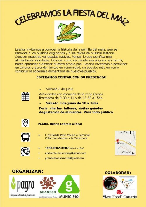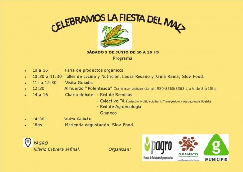 Asimismo, la cooperativa GRANECO junto al gobierno del área capitalina, Montevideo, organizan para los días 2 y 3 de junio una fiesta del maíz criollo donde entre otros contenidos se celebrará la “recuperación” de dos variedades locales de este grano con destino a la producción de harinas ecológicas: el maíz “cuarentón” y el maíz “catete”. Los mismos habían sufrido contaminación genética a partir del cruzamiento involuntario con maíces transgénicos en el predio que sirve de semillero a la cooperativa.