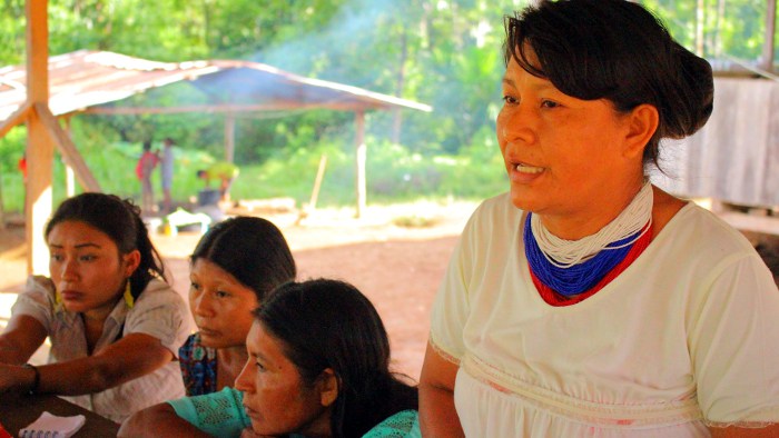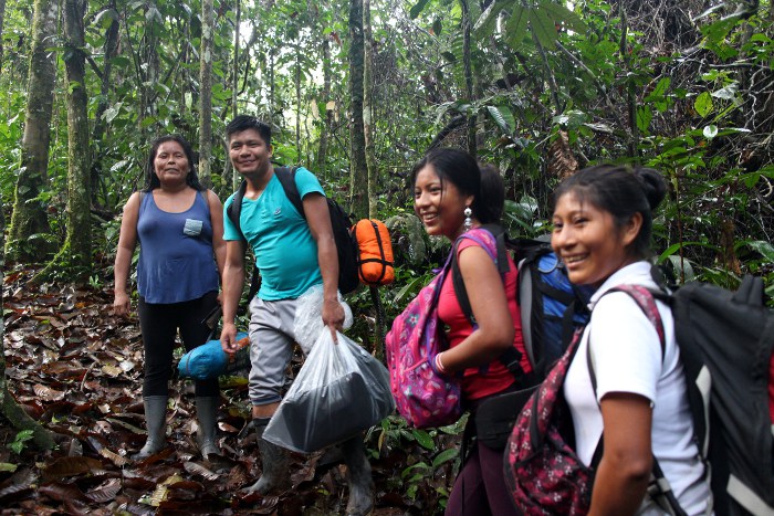 Arribamos el jueves 25 de mayo, luego de avistar la espesa selva desde lo alto. Una nutrida bienvenida de mujeres, infantes y ancianos, que extendieron sus manos y palabras tradicionales: estábamos en Kambantsa. Con el saludo oficial de Jorge Jimpikit, autoridad tradicional, se formalizaba esta rica historia emprendida por la ecologista Ivonne Ramos, la promotora social Margot Escobar y Ena Santi, del territorio Sarayacú. Luego se complementaría con la líder shiwiar Rosa Gualinga y Edy Villamil liderer Kichwa, ambos guías de esta misión inédita.