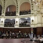 Su charla culminó con una nutrida ronda de intervenciones de parte de los asistentes al Cine Teatro Plaza de Montevideo.