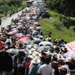 Desde el pasado 5 de agosto, campesinos, trabajadores sindicalizados, indígenas e integrantes de las organizaciones que conforman el Frente Nacional contra el golpe de Estado han recorrido decenas de kilómetros para llegar hoy a Tegucigalpa y San Pedro Sula, para exigir que se restituya en su cargo al presidente Zelaya y que se termine con el régimen de excepción que desde hace 45 días encabeza Roberto Micheletti.