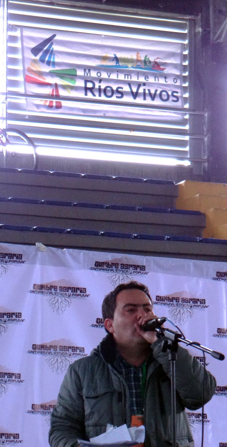La primera intervención estuvo a cargo de Edilia González por parte de la MUA, quien inició su discurso saludando a las mujeres, la juventud y todos los sectores populares colombianos. Sobre la relación entre la Cumbre y los procesos de unidad señaló “hemos participado de la unidad desde la Cumbre Social y Política y desde la construcción de mismo Mandato Nacional Agrario, creemos que éste es un proceso que nos va a permitir construir unos criterios basados en el respeto, la articulación y el trabajo colectivo en términos de Unidad; la cumbre sigue caminando y construyéndose, por eso invitamos a todas y todos a participar en ella”, además señaló la importancia de seguir trabajando por una economía campesina, las mujeres trabajadoras, e hizo una llamado a la juventud para que asuma los nuevos liderazgos. En cuanto al Pacto Agrario aclaró que la MUA no participará, sino que construirá desde su propio trabajo “nosotros construiremos nuestra propia agenda”. Su intervención finalizó con la afirmación “por la defensa de la vida abrazamos la paz, seguiremos trabajando por la defensa del territorio, el ambiente, estamos en contra de los saqueos a los recursos minero- energéticos y en pro del uso, control y desarrollo del suelo y territorio. Los invitamos a construir unidad a través de la diferencia”.