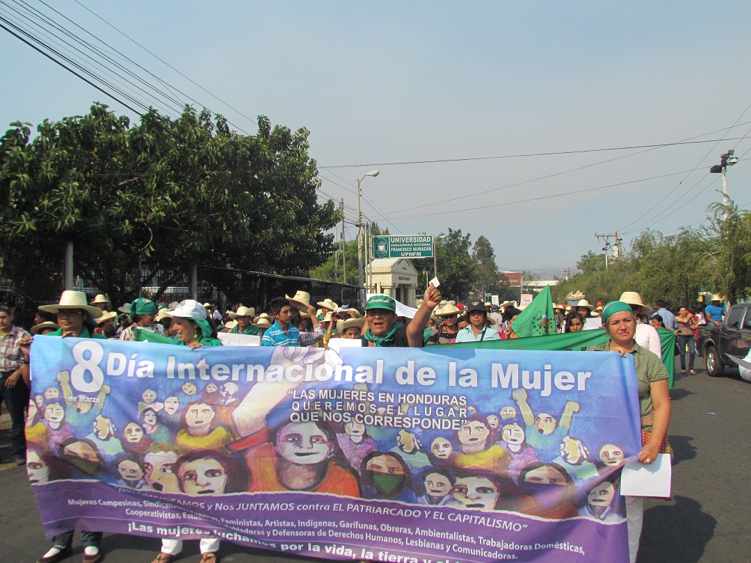 Con una nutrida y colorida movilización conmemoraron el Día Internacional de la Mujer con reivindicaciones fuertes y claras como la aprobación de la ley de trasformación agraria integral presentada al congreso Nacional en octubre del 2011 y la adjudicación de tierra prioritariamente para las mujeres, el cese a la violencia y criminalización contra las mujeres y aplicación efectiva de los mecanismos judiciales contra los feminicidios y mejoramiento del acceso a la justicia.