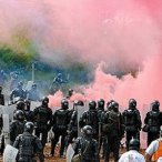 La protesta duró unos 20 minutos, porque sin mediar palabra las fuerzas de los ESMAD arremetieron contra los manifestantes con gases lacrimógenos y piedras. “Siempre se les va la mano”, dijo a Radio Mundo Real el activista Juan Pablo Soler, integrante de Otros Mundos Colombia y del Movimiento Ríos Vivos de ese país, presente en la movilización. La población agredida se sintió indignada y varios manifestantes se defendieron también lanzando piedras. Por eso hubo algunos agentes de los ESMAD heridos. “Sabemos que son colombianos, igual que nosotros, y lamentamos mucho esa situación”, dijo Soler, antes de reiterar que los ESMAD hicieron uso de la fuerza bruta contra poblaciones que luchan “por sus derechos y soberanía en el territorio”.