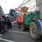 Los activistas se reunieron en la Plaza Nueva y desde allí comenzaron a caminar. Fue particularmente llamativa la presencia de La Vía Campesina, que llevó varios tractores que fueron manejados por los propios campesinos durante la movilización. Unos 30 delegados de esta red llegaron a Ginebra desde África, Asia y otros países de Europa.
