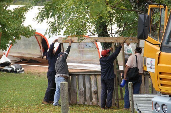 Estas imágenes muestran las tareas de preparación de la instalación del campamento, los servicios de cocina y los espacios de trabajo durante la primera jornada. El fortalecimiento de la producción agroecológica de semillas, su libre uso, intercambio y mejoramiento por parte de las familias productoras rurales, suburbanas y urbanas, se encuentra en la base de las luchas por soberanía alimentaria, se señaló en los debates de los que participan unos 250 integrantes de la Red.