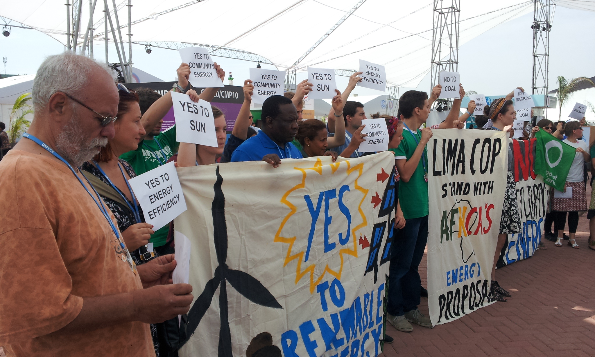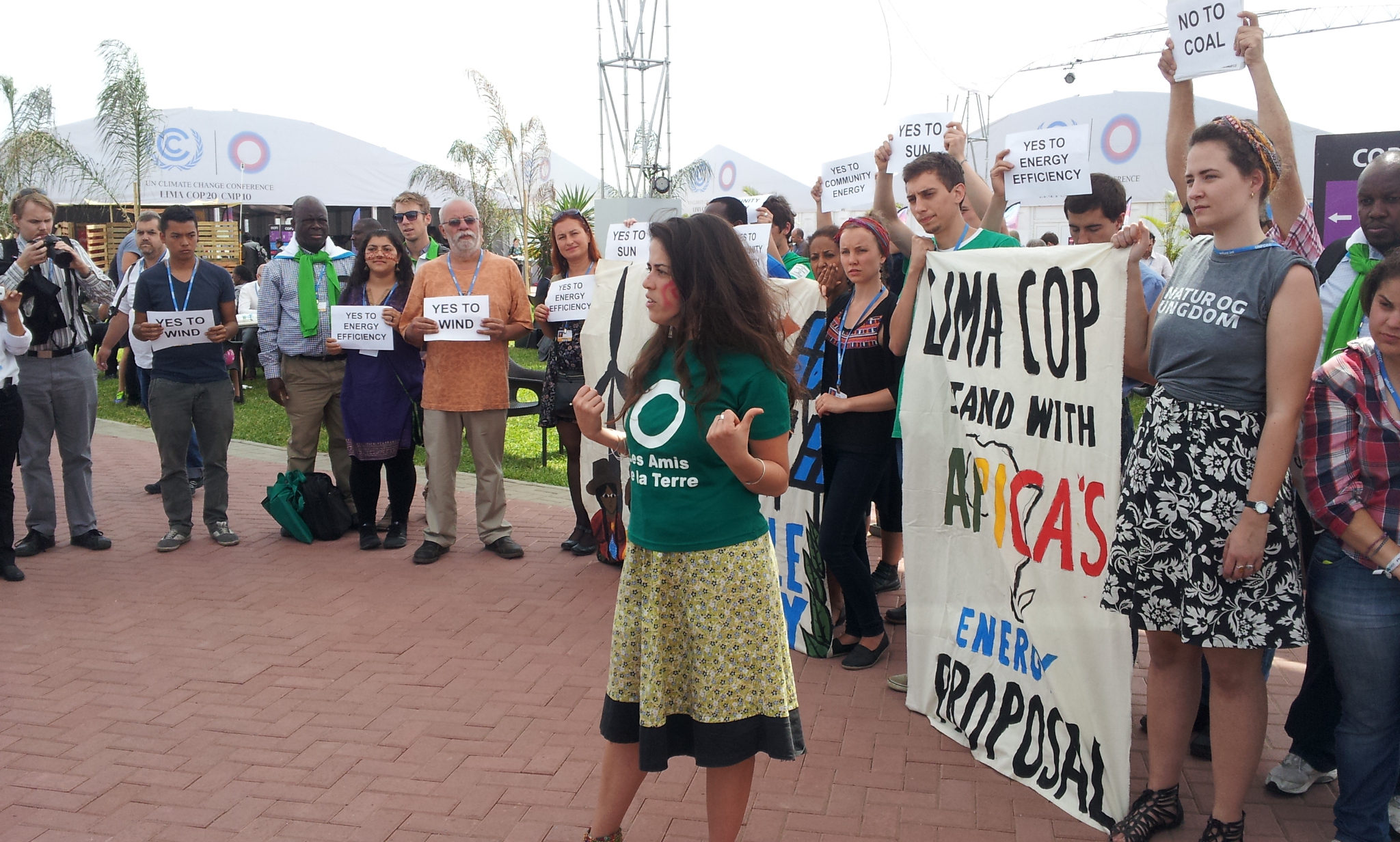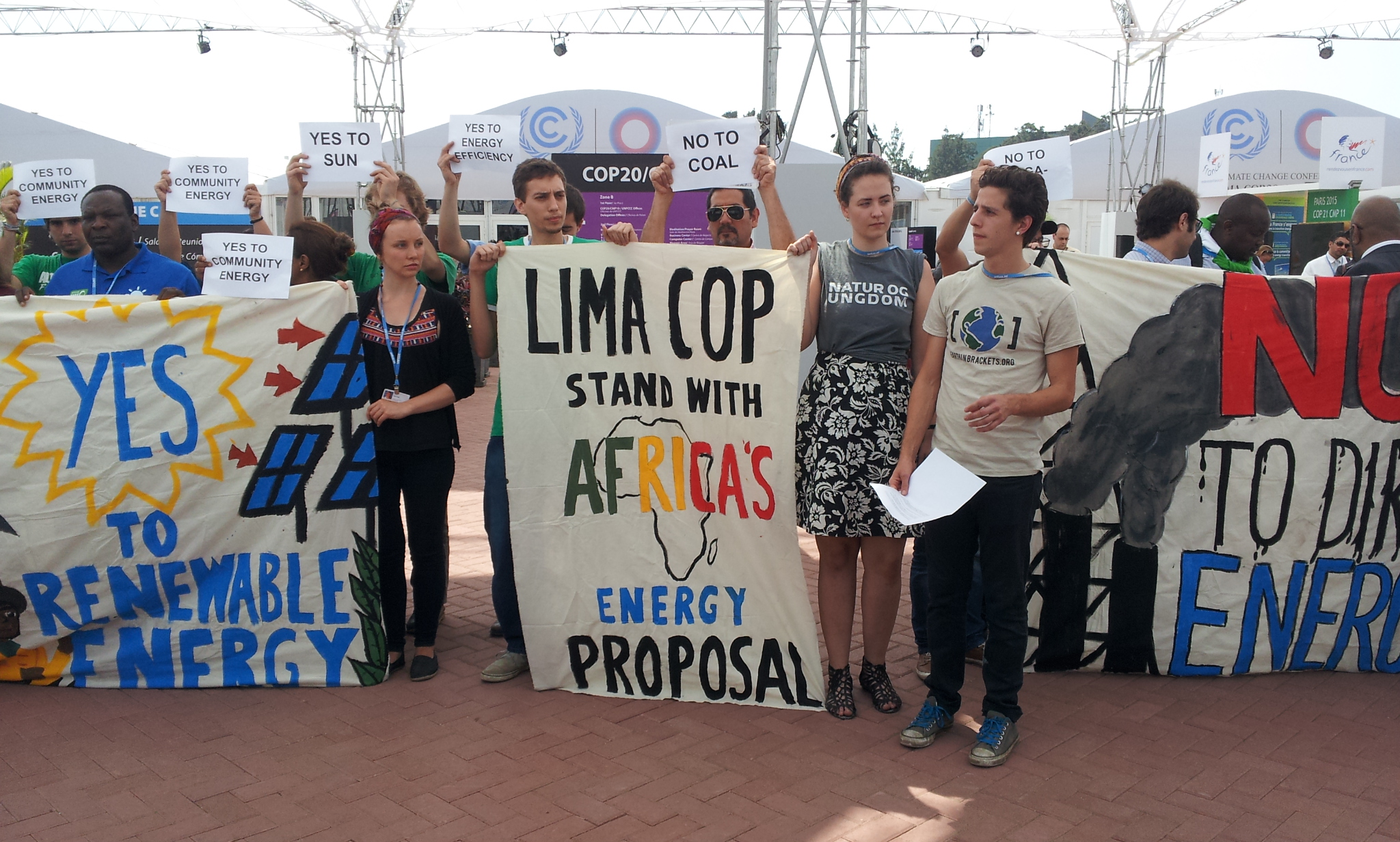 On Friday, Friends of the Earth International and young activists member of the organization Earth in Brackets held a demonstration at the COP 20 on Climate Change taking place in Lima, Peru, to support a proposal submitted by the African Group to promote renewable energy.