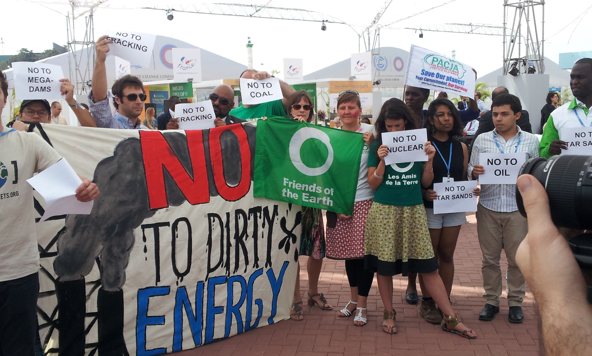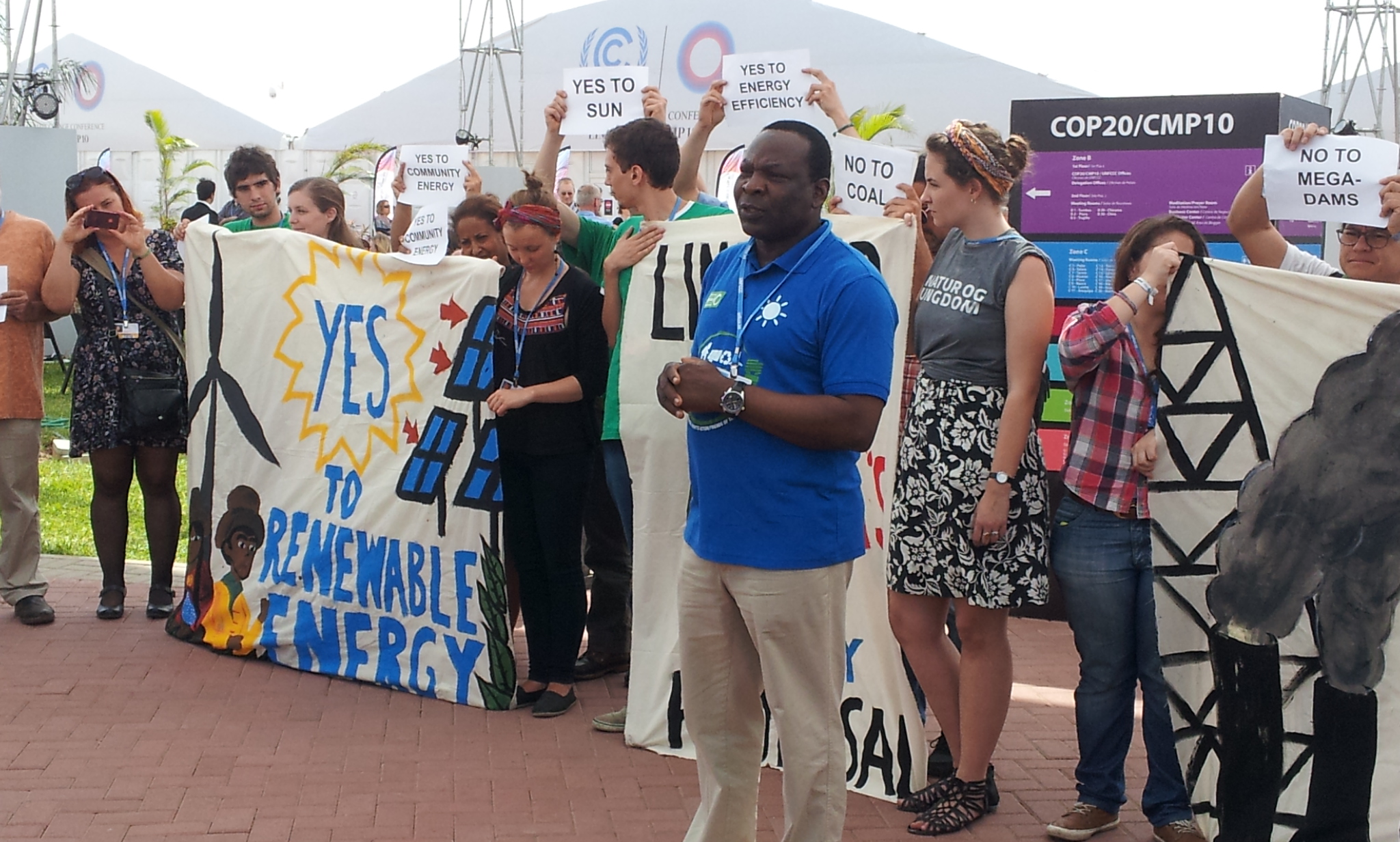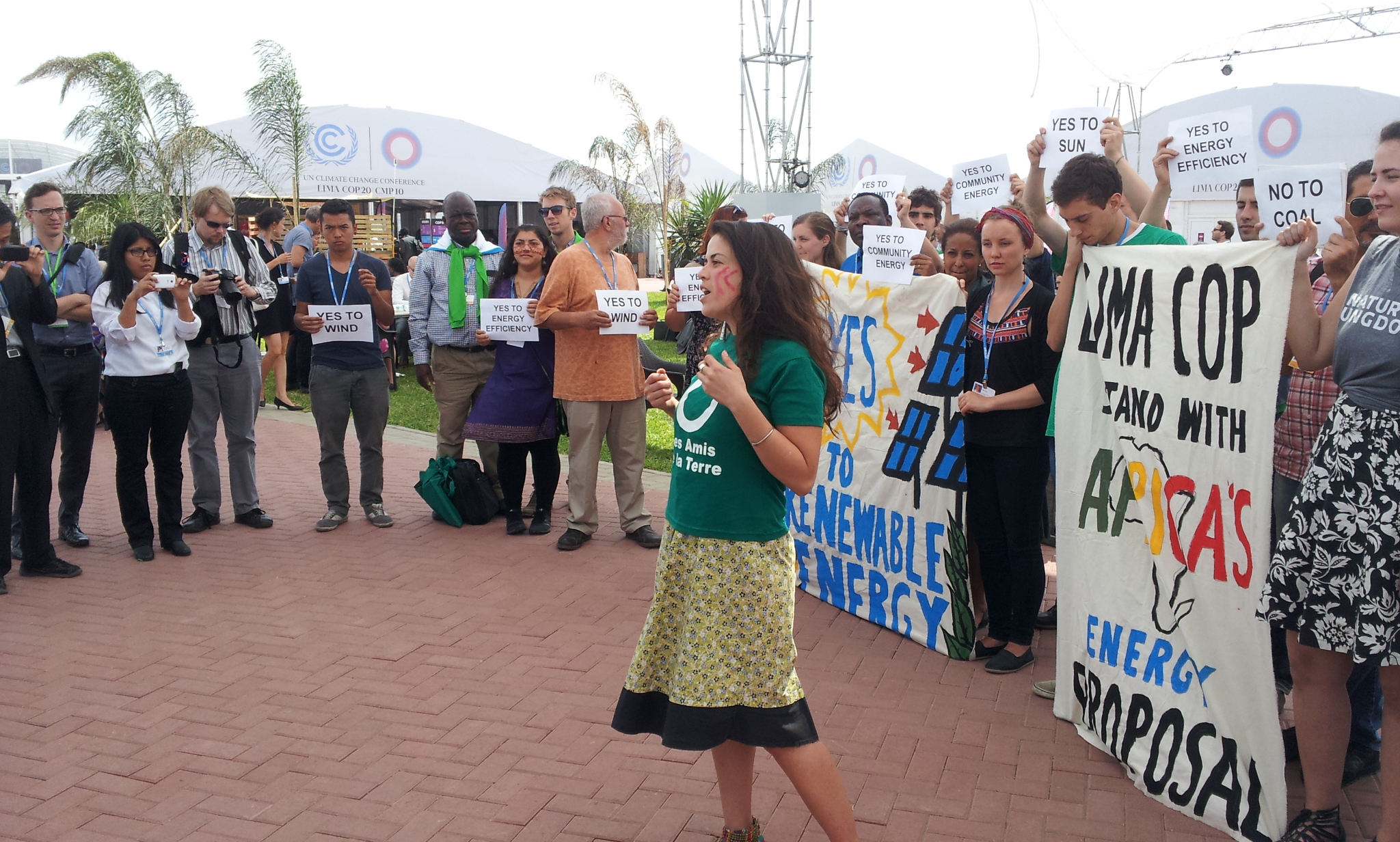 On Friday, Friends of the Earth International and young activists member of the organization Earth in Brackets held a demonstration at the COP 20 on Climate Change taking place in Lima, Peru, to support a proposal submitted by the African Group to promote renewable energy.